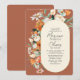 A unique design for a unique couple. The design features delicate flowers illustration in burnt orange and white with some greenery over a terracotta background, great for summer or early fall wedding.