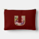 Rustic Flower Initial U Burgundy Accessory Pouch