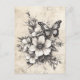 This elegant postcard features a graceful butterfly resting among hand-drawn flowers, all set against a softly weathered brown background that mimics the texture of aged parchment. The rustic tones and vintage aesthetic evoke the charm of old botanical journals and forgotten letters, making it a nostalgic piece full of warmth and natural beauty. Perfect for autumn themes, garden lovers, nature-inspired décor, or anyone drawn to vintage cottagecore vibes. A meaningful design for birthdays, anniversaries, or simply celebrating the timeless beauty of nature.