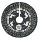 Intricate deer hunting themed Christmas tree skirt in hues of forest green, black, tan, and white. The tree skirt features decorative nature inspired elements as well as white deer silhouettes and antlers accents. This tree skirt would make an excellent tree skirt for a hunting family!