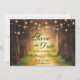 Rustic Forest Path String Lights Save the Date Wedding Engagement Announcement Card