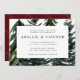 Elements: the front features a watercolor evergreen forest. The back a festive plaid. Colours: Red, garnet, scarlet, currant, wine, white, black, green, pine, hunter, juniper, moss. Themes: Rustic, outdoors, woodsy, winter, Christmas, fall, mountains, hiking, Scottish, plaid, tartan, modern. Collection: Rustic Forest Tartan Plaid Red Black Green White Wedding Collection Product Type: Wedding Invitations