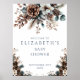 This modern, elegant rustic forest watercolor pinecone floral baby shower welcome sign can be personalised with your information in stylish blue typography. Designed by Thisisnotme©