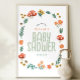 This cute and rustic baby shower welcome sign features adorable woodland illustrations, with mushrooms, acorns, greenery, and flowers, and space to add a name and date. The perfect nature design for your baby shower!