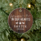 Rustic pet memorial ornament printed with a brown wood look. Forever in our hearts written in white, with a cute heart. Add your pet's name and years living.
