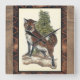 This rustic print illustrates a fox in front of a pine tree. The colours are in the soft pastel range and the framing of the picture has traditional motives in the brown gama. This designs would be a perfect addition to your country house decoration.
