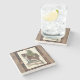 The coasters are gorgeous, a quality feel and heavy weight. They look like a precious archeological find. A rustic stone juxtaposed with a modern floral black and white print. I like the way the print goes slightly imperfect on the cut stone edges giving them a kind-of natural beauty.