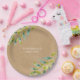 Rustic fresh meadow leaves paper plate featuring delicate shades of green watercolour foliage, framing your personalised message. Perfect for weddings, bridal showers, baby showers, engagement parties anniversary celebrations and birthday get-togethers. Designed by Thisisnotme©