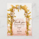The delicate botanical arch frames the message while the soft watercolor landscape adds warmth and charm, creating a timeless and elegant look for your wedding stationery.