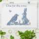 Rustic Gardener's Poem Blue & White Rabbit Crow Tea Towel