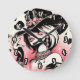 Rustic Glam Cowgirl Pink Sparkle Cowhide Print Round Clock