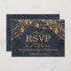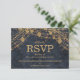 Rustic Glam Denim Blue Gold String Lights Wedding RSVP Card