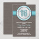 Rustic Glitter Aqua Blue Sweet 16 Invitations