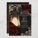 Rustic Glow Lantern & Dark Red Roses Sweet 16 Invitation