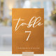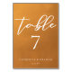 This rustic gold wedding table number features elegant white typography overlaid on an understated earth tone gradient. Simple light orange and brown hues follow the current fall trends for a bohemian wedding this autumn. Complete the look with your minimalist script over the colour fade.