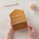This rustic gold gradient all in one wedding invitation features elegant white typography overlaid on understated earth tones and a detachable RSVP card. Simple light orange and bronze hues follow the current fall trends for a bohemian wedding this autumn. Complete the look with your minimalist script over the colour fade.