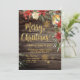 A classy and elegant holiday Christmas card on one-sided 5 by 7 inch semi gloss card stock. A classic reclaimed wood rustic barn board background with holiday red florals and evergreen greenery with shimmering gold handwritten calligraphy, a sprinkle of delicate snowflakes, lit by a lantern, wishing your recipients a Merry Christmas and happy new year. The back of the card says Happy Holiday with your family name and can be customised.