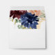 This rustic gold calligraphy self-addressed rsvp envelope is perfect for a modern wedding. The design features hand-drawn watercolor purple, navy, blush, burgundy, navy flowers, green and gold leaves adorning an elegant geometric frame.