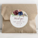 This rustic gold leaves floral thank you wedding favour classic round sticker is perfect for a modern wedding. The design features hand-drawn watercolor purple, navy, blush, burgundy, navy flowers, green and gold leaves.