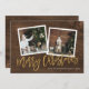 Affordable custom printed holiday photo cards with simple templates for customisation. This rustic chic design features a 2 photo template with faux gold foil script text on a wood-look background. Personalise it with your photos, family name, the year or other custom text. Please note that the faux gold foil and wood background are part of the printed design - the cards will not have real metallic foil or wood. Reverse side has space for additional photos and text. Use the design tools to change the text fonts and colours, add more photos and create a unique one of a kind holiday photo card design.