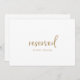 This rustic gold script reserved sign is perfect for a country wedding. The card is double sided (prints on both sides). The simple and modern gold and white design features unique whimsical handwritten calligraphy lettering with a contemporary minimalist boho style. Customisable in any colour. Keep the design minimal and simplistic, as is, or personalise it by adding your own graphics and artwork. Use these cards to reserve chairs or tables at your wedding ceremony, reception or any event.