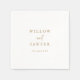 These rustic gold script wedding paper napkins are perfect for a country wedding reception. The simple and modern gold and white design features unique whimsical handwritten calligraphy lettering with a contemporary minimalist boho style. Customisable in any colour. Keep the design minimal and simplistic, as is, or personalise it by adding your own graphics and artwork. Personalise the napkins with the names of the bride and groom, and the wedding date. These napkins can be used for the wedding reception, rehearsal dinner, engagement party and more!