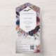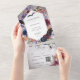 AVAILABLE WITH OR WITHOUT A QR CODE OR WITH OR WITHOUT DINNER SELECTION OPTIONS. Calling all ghouls and boos! Celebrate your love story with a hauntingly delightful Halloween wedding! Our frightfully fun invitations set the scene for a bewitching bash. Imagine a distressed background in burgundy and black, the perfect canvas for a spooky soirée. Whimsical florals in gothic shades of pink, burgundy, blue, rust gold, purple and black entwine with delightfully creepy accents – like spiders casting intricate webs and playful bats flitting about. This boo-tiful design screams "happily ever after" with a Halloween twist, ensuring your guests will be spellbound by your unique celebration of love. Created by Simply Farmhouse Press.