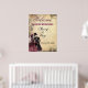 This Halloween wedding invitation features a skeleton couple, beautiful flowers, and a cemetery set against an aged paper background. The invitation blends romance, elegance, and spookiness into a unique and captivating design.