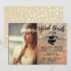 Having a grad bash party? Enjoy this rustic invitation with customisable photo. Wooden board background, string lights, with all the customisable event details. Tan background with rustic, confetti spots.