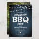 This Graduation BBQ Party invitation features a charming rustic dark blue background, beautifully accented with glowing strings of lights and a classic graduation cap. The casual, festive design sets the perfect tone for your outdoor cookout celebration. On the backside, you'll find space to showcase a photo of the graduate, adding a personal touch to this special invitation. Ideal for a laid-back and memorable grad party!