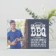 Cool rustic graduation barbecue party invitation with distressed vintage typography. Use the design tools to choose any background colour to coordinate with your school colours or party theme. Add your senior photo and graduation party details with blank space for additional photos and text on the back. Click Customise It to add more photos and text, edit fonts and colours to create a unique graduation announcement and party invitation.