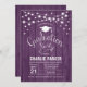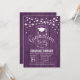 Rustic graduation party invitation for women or men. Elegant invite card in lavender with wood pattern. Features string fairy lights, a cap and typography script font. Perfect for a stylish graduation celebration. Printed Zazzle invitations or instant download digital template.
