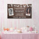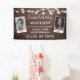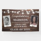 Celebrate your grad with this modern yet rustic string lights party banner on a dark wood texture featuring 2 personal pictures of your graduate alongside name, class of and school name. Perfect for rustic barn, festive outdoor or any graduation celebration. Easy customisation under "personalise this template".
