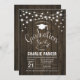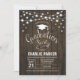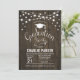 Rustic Graduation Party Invitation with dark brown wood pattern and string fairy lights. Perfect for an elegant party.