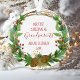 This design features a rustic watercolor Christmas wreath decorated with pine cones, berries and candy canes, surrounding the words "Our First Christmas as Grandparents" in whimsical red printing and handwriting fonts. Personalise it by adding baby's name and the year. Customise the reverse side with a favourite photo of the new grandchild, encircled by the same wreath.