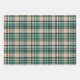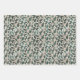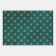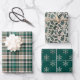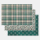 A collection of three coordinating gift wrap sheets in tan and emerald green.