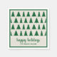 Host a festive holiday party with paper napkins featuring a green geometric tree pattern on a rustic beige printed faux canvas texture background. Across the bottom, it reads, "happy holidays" in a green script font above a customisable name in a simple sans serif green font. Personalise it by adding a custom greeting, family name and/or the year in the sidebar.