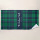 Rustic Green Blue Plaid Family Name Beach Towel.