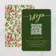 This rustic wedding response card features a place for your QR code so that guests can easily rsvp on your wedding website. The front features a simple and clean layout with trendy script typography and a green background. The back is a beautiful botanical berries and greenery holiday print, perfect for a Christmas or winter wedding.