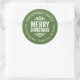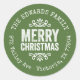 Affordable custom printed round return address stickers personalised with your family name and return address. This rustic modern holiday design features distressed MERRY CHRISTMAS lettering on a green background. Use the design tools to choose any background colour and edit text fonts and colours to further customise your own unique holiday return address labels.