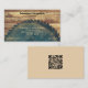 This business card front features a rustic green circular saw blade with business details on the blade and a rough edge wood background. A placeholder QR code is on the back that you replace with yours. Use the QR code link to send customers to your website, photographs of your work, reviews or other pages. Personalise the template details, remove any text or click customise to select a font style, size, and colour to prefer. This business card design may work well for wood restoration, carpentry, construction or maybe your business.