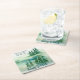 Rustic Green Forest Pine Trees Square Paper Coaster. Personalise with your custom names and wedding details.