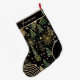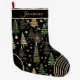Rustic green and gold Christmas stocking with custom name. A cosy farmhouse touch for your holiday mantel.