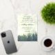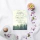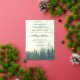 This beautiful wedding invitation is the perfect combination of beauty, elegance, and rustic charm. The design features a mountainside shrouded in mist or fog and covered with green pine trees, and the text features script calligraphy with swashes or flourishes on the ends of the letters. With accents printed in your choice of gold, silver, or rose gold foil, this invitation combines refined beauty with an outdoor or woodland theme.