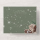 AVAILABLE WITH OR WITHOUT A QR CODE TO SCAN OR WITH DINNER SELECTION OPTIONS. This design features a rustic green pine and pinecone bouquet on a pine green background with white flowers. It is accented with a white sparkle overlay to illustrate the magic of the beautiful winter holidays. Perfect for a Christmas or winter wedding. Personalised All-In-One invitations are a unique combination of both a beautifully printed custom invitation with an easy to tear off perforated RSVP postcard. And they are so easy to use! You simply fold, then seal the back flap with the three included clear stickers, and mail. And when your guests receive your custom invite, they just tear the perforated RSVP Card off and drop it back in the mail to you!