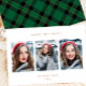 This trendy rustic Christmas greeting features a green plaid print with a touch of faux gold on the back. This lends a modern glam touch to a traditional holiday pattern. The front offers a three photo grid, "Happy Holidays" typography, and a simple white background.