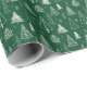 This festive paper features an array of whimsical, hand-drawn Christmas trees in crisp white, set against a rich, deep forest green background. The playful mix of tree designs and delicate snowflakes creates a magical, wintery forest scene that feels both traditional and modern.