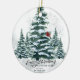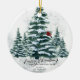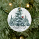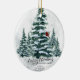 Rustic Green Winter Pine Trees Red Cardinal Bird Ceramic Ornament