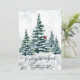 Rustic Green Winter Pine Trees Red Cardinal Bird Holiday Card