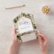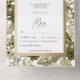 AVAILABLE WITH OR WITHOUT A QR CODE OR DINNER SELECTION OPTIONS. This design features a background of different types of botanical greenery. The white text area is framed in faux gold foil. A monogram with the bride and groom's first initial on the outside flap completes it. Created by Simply Farmhouse Press.